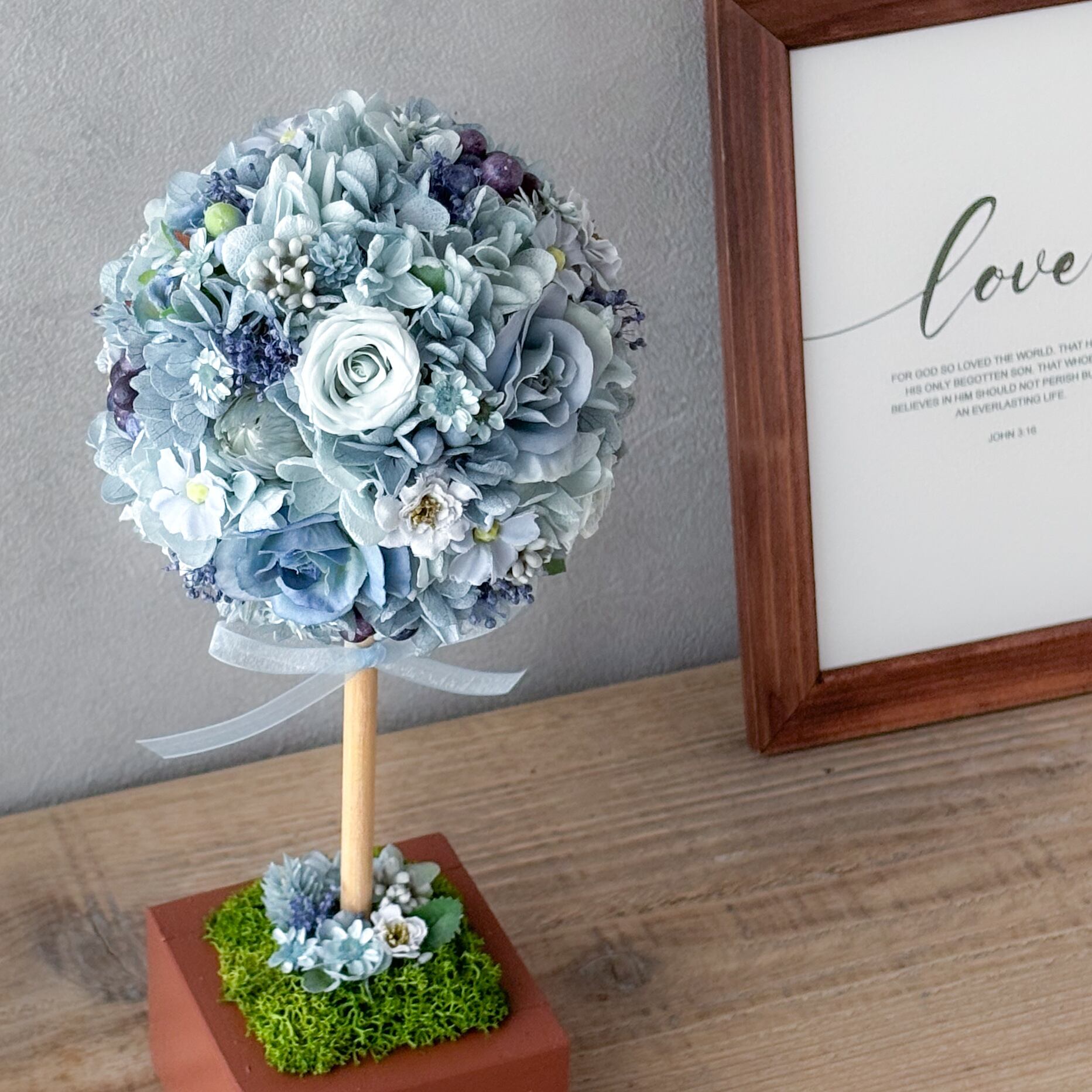 お花で仕立てたインテリアトピアリーです。