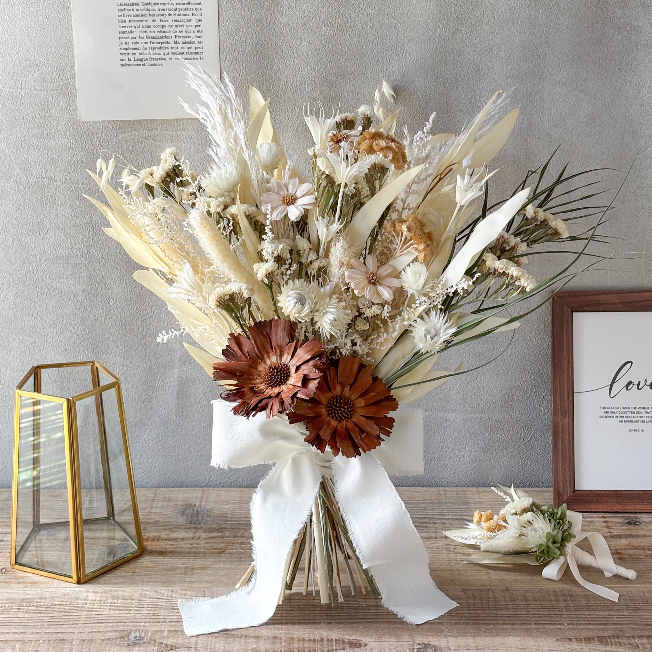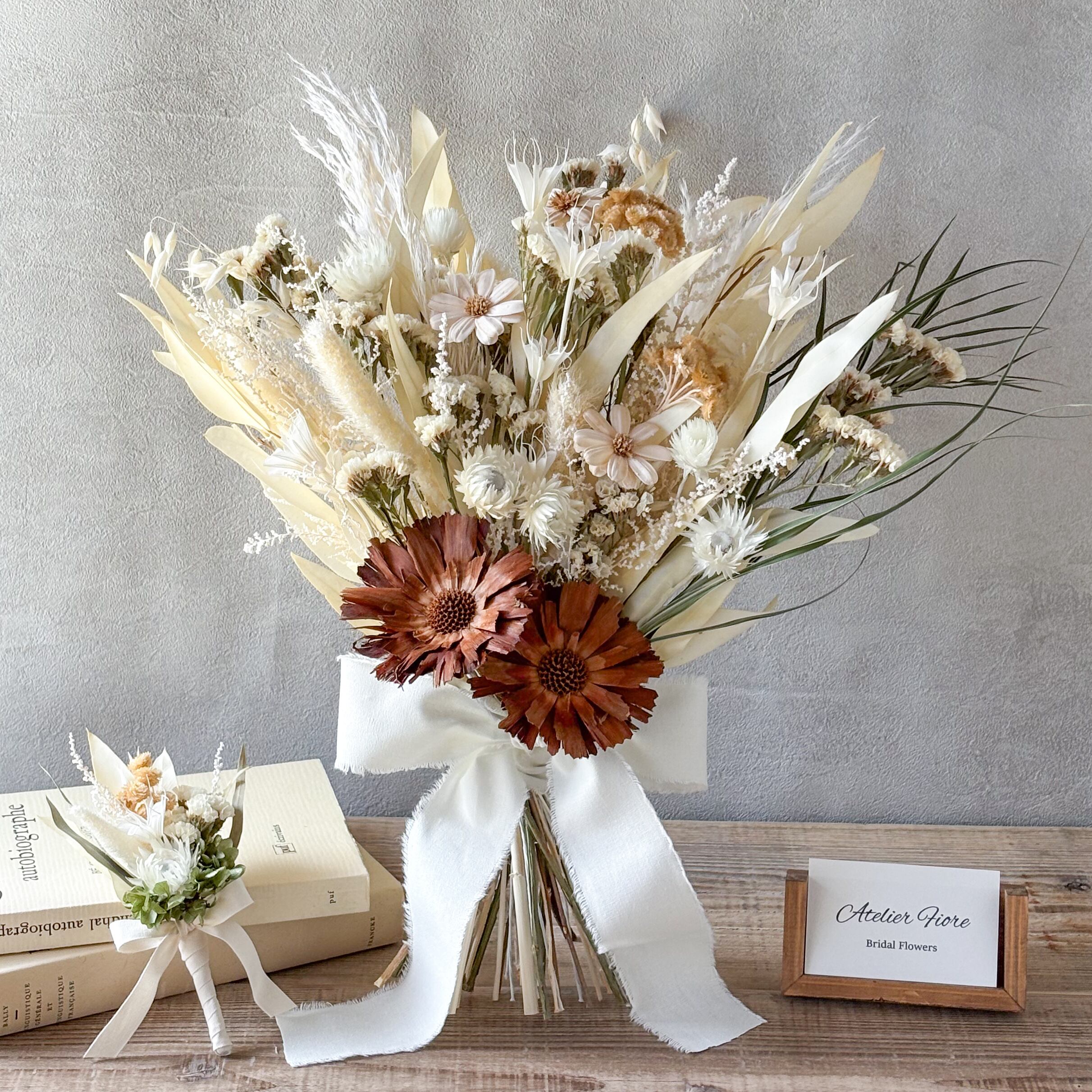 ドライフラワーブーケ・ブートニアセット|結婚式 前撮り ナチュラルウエディング