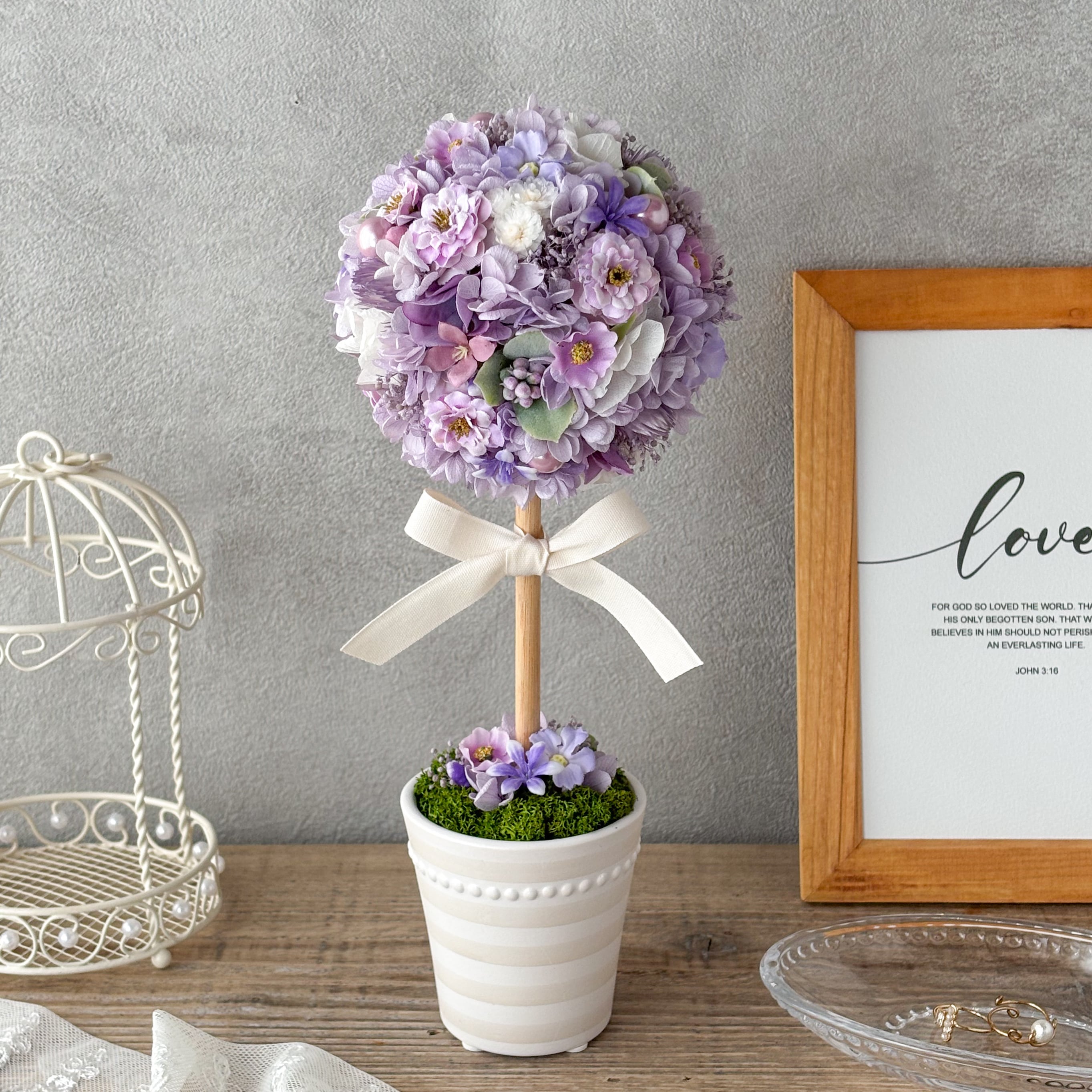木をモチーフにしたフラワーインテリア「トピアリー」|結婚祝い・新築祝い・開院祝いにおすすめ|卒業祝い ニッチェに飾る