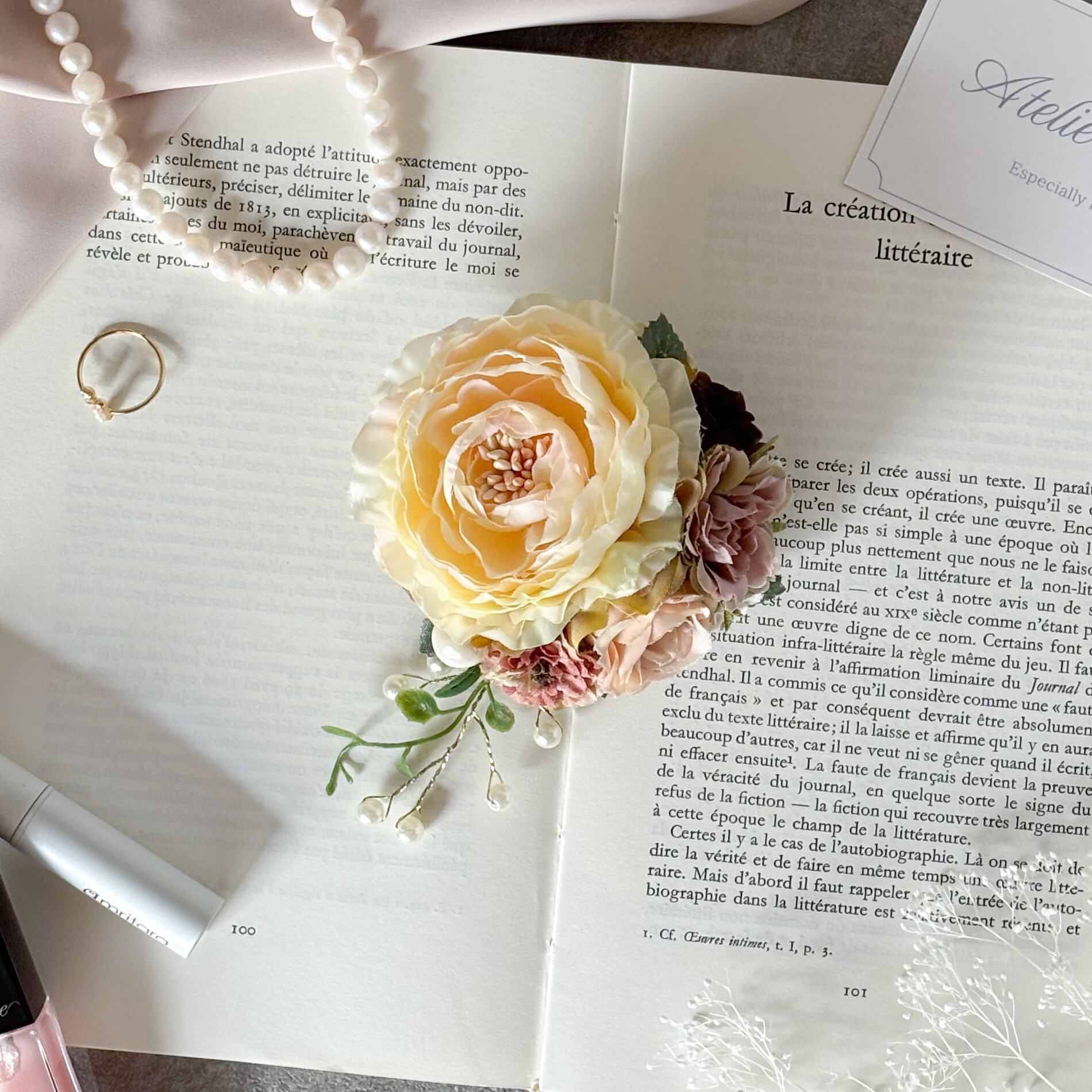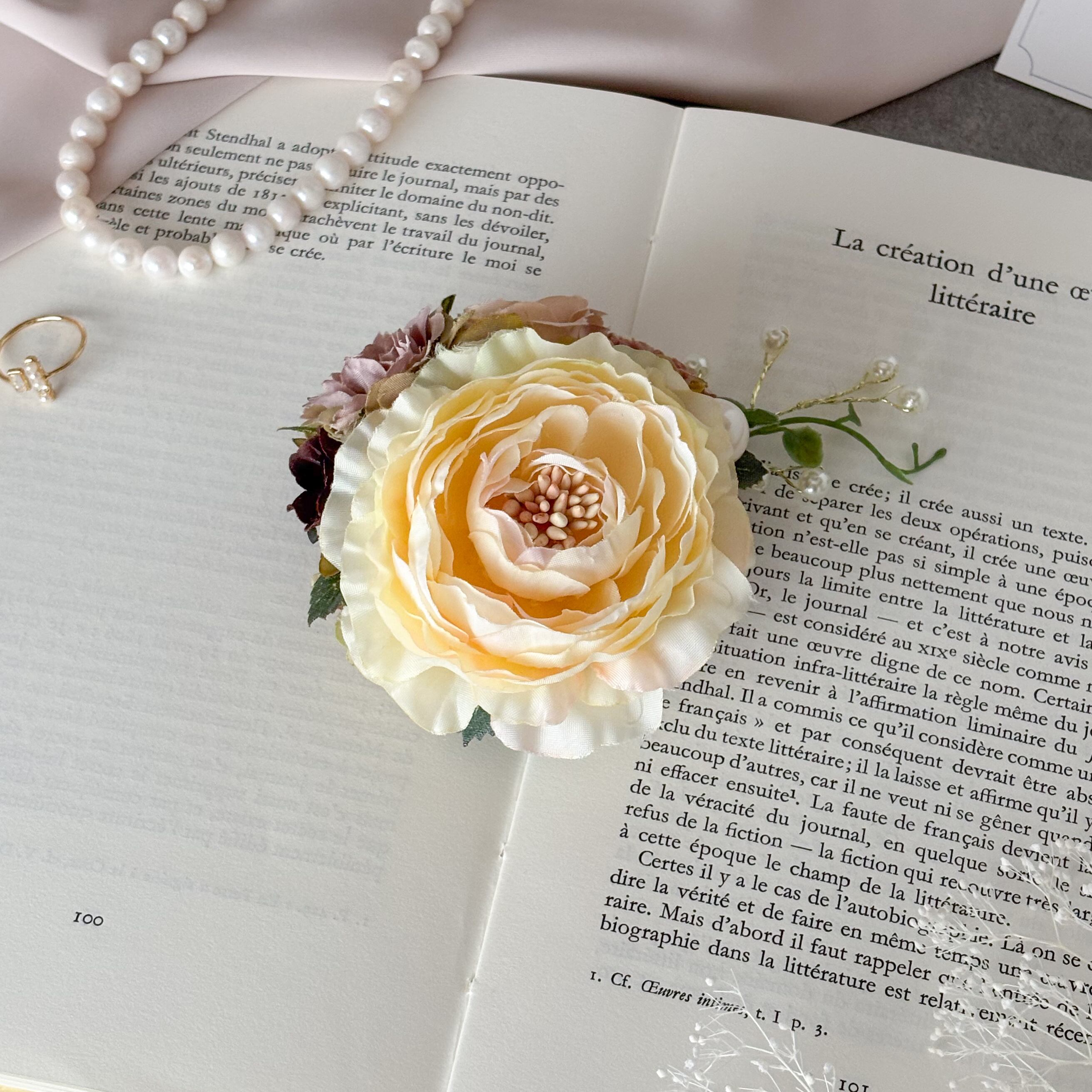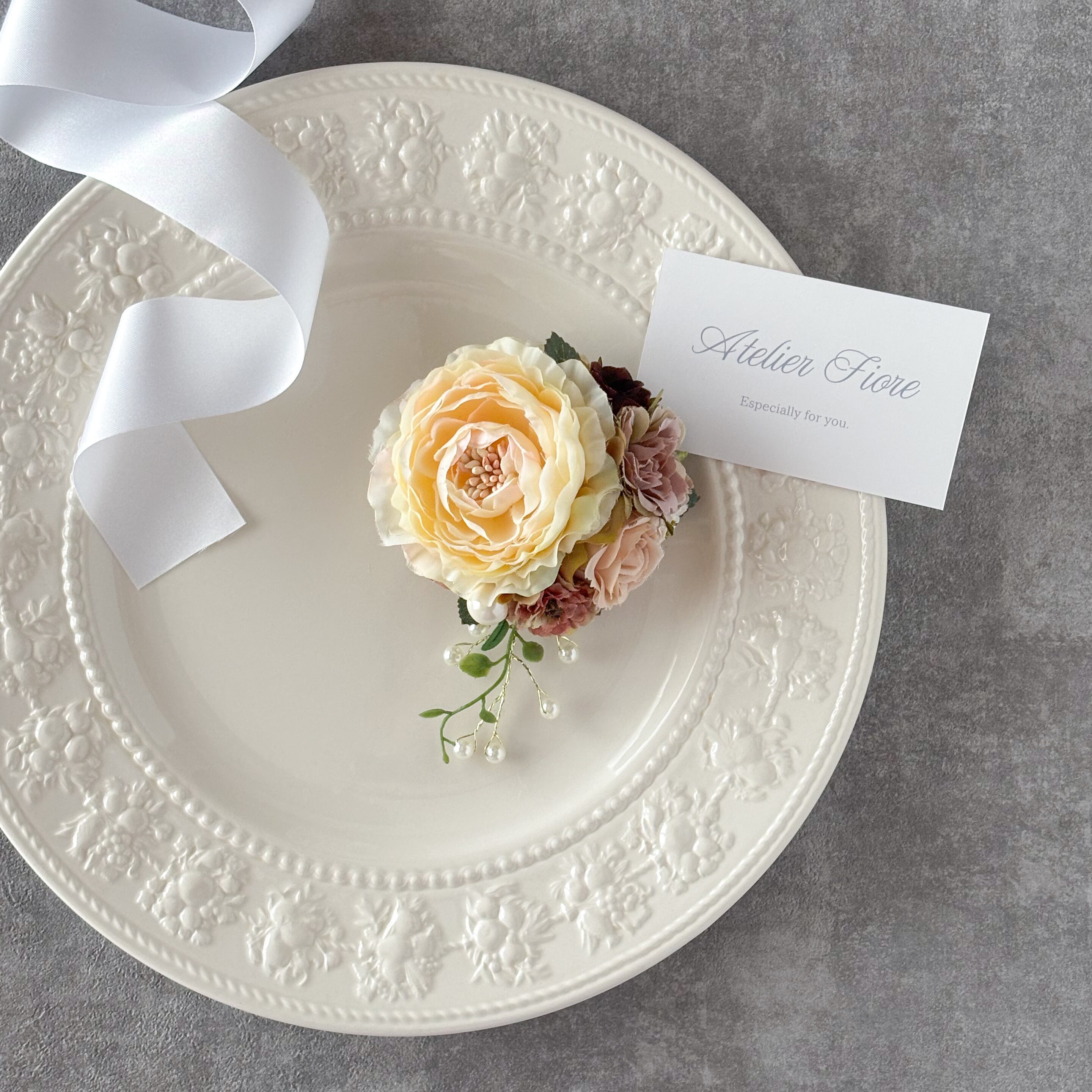 装着は安全ピンとクリップの2WAYタイプで、お花は全てアーティフィシャルフラワーを使用していますので長く、様々な行事でお使いいただけます。